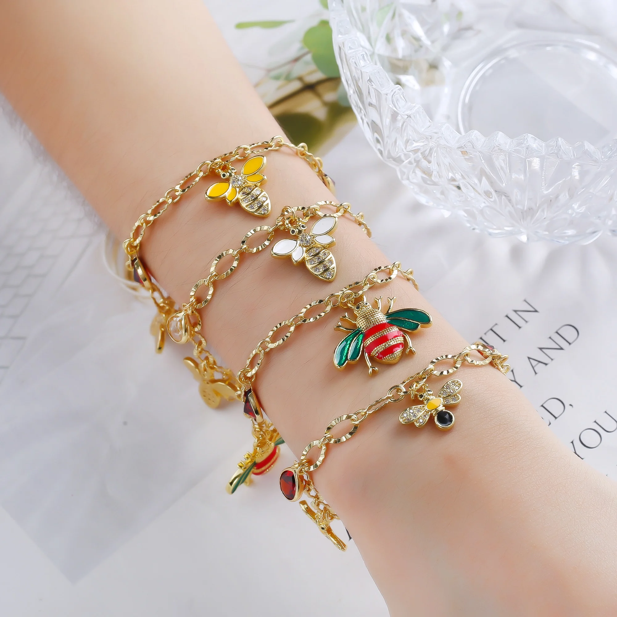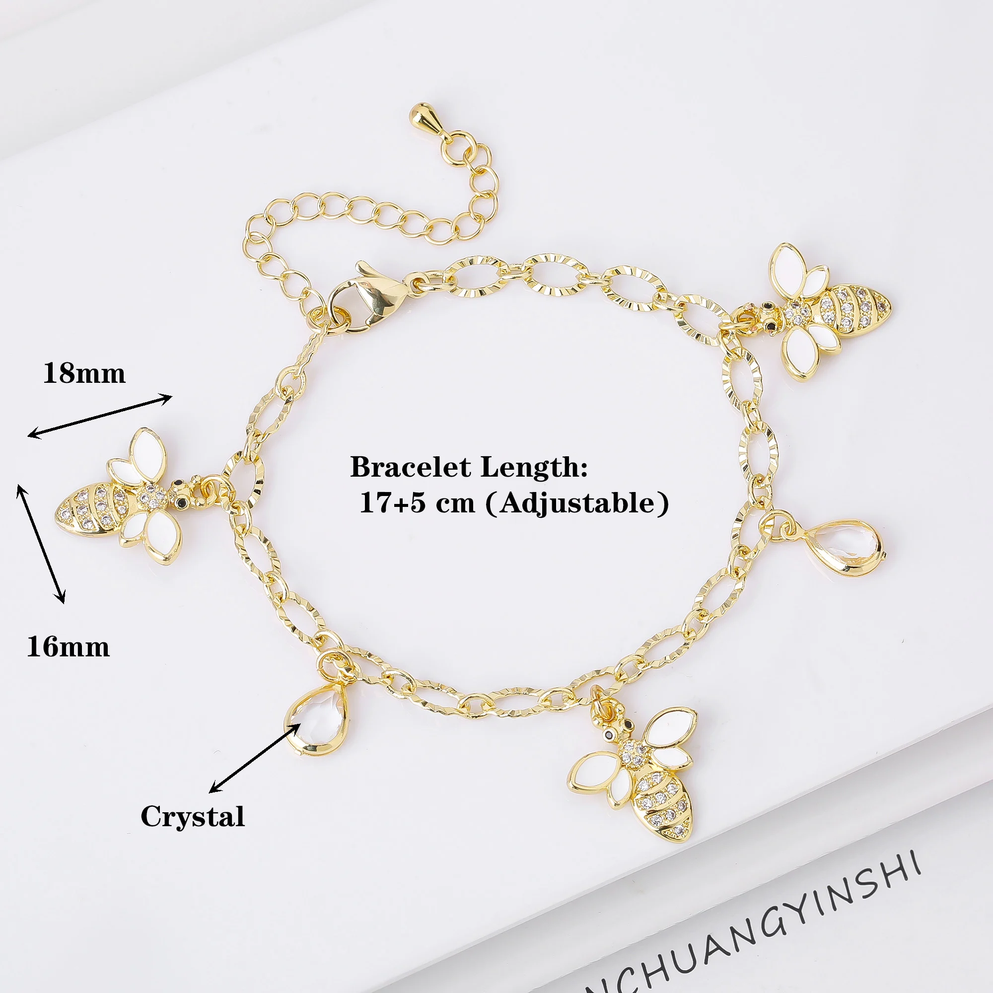Name: Hot-Selling Cute Insect Bee Zircon Adjustable Wrist Jewelry Bracelet for Women New Fashion Daily Party Aesthetic Jewelry Gift